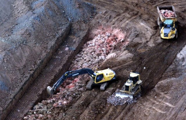 Back in London, Tony Blair kept insisting it was under control. Once he visited Cumbria on the 22 March, and saw the scale of the devastation, he called in the Army, and turned the airfield at RAF Great Orton into a “killing field” and mass grave: within only a week, some 20 trenches, four metres deep and 150 metres long, were hewn into the landscape. The General Election was delayed by a month, the first time since the Second World War, shortly after which Nick Brown’s Maff was replaced by Margaret Beckett’s Defra (“Destroy Every Fucking Rural Activity,” as one farmer quipped). Things were better organised now, but it was all too late: such ineptitude combined with bureaucratic slaughter had made a lasting impression. “You don’t give a shit about the North,” one protester shouted at Blair, as the prime minister slipped out of his Jag in Carlisle town centre.