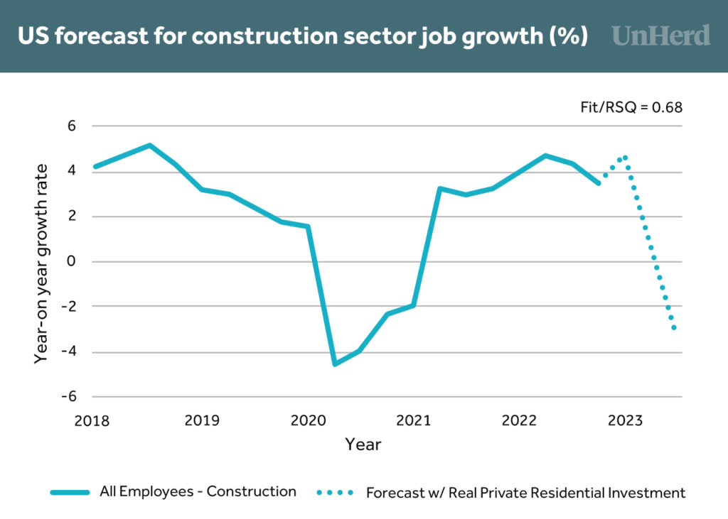 This matters for us here in the UK, too. For one, if the US slips into recession we will undoubtedly follow. But more immediately, Fed rate hikes spur the Bank of England to raise rates further to ensure that the value of sterling does not erode. This will spark less investment in the construction sector here and, unlike in the US, we are already seeing construction employment fall. So whatever happens on that side of the Atlantic, we should be doubly prepared for it to come to us, too.