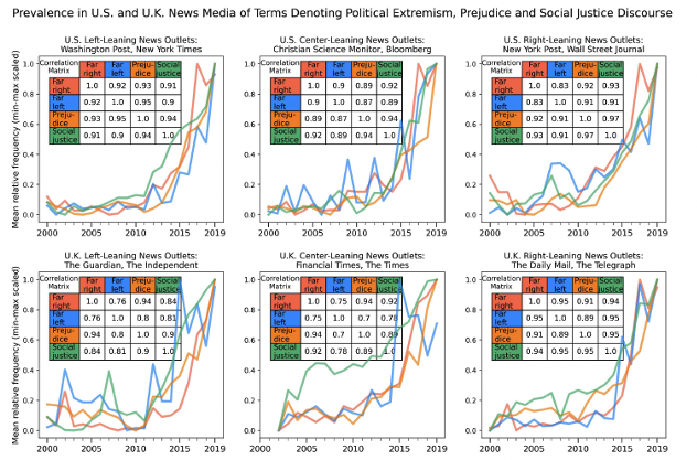Polarisation is on the rise in Britain. A new paper by David Rozado and myself shows that major British media outlets have, like their American equivalents, grown increasingly extreme in their characterisation of opposing ideologies since 2000. Terms like ‘extreme-Right’ and, to a lesser extent, ‘extreme-Left’ have surged since 2014 alongside social justice phrases like ‘racist’ and ‘white supremacy’ whose explosion in frequency has been dubbed the Great Awokening.