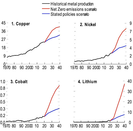 The chart below shows the amount of copper, nickel, cobalt, and lithium that would be required to achieve Net Zero goals. While the targets for copper and nickel may be somewhat feasible, the targets for cobalt and especially lithium look far from realistic. Indeed, even with the very limited numbers of electric vehicles currently being produced, the price of lithium has risen from 35,000 CNY per ton in 2020 to around 580,000 today — an increase of around 1,560%.