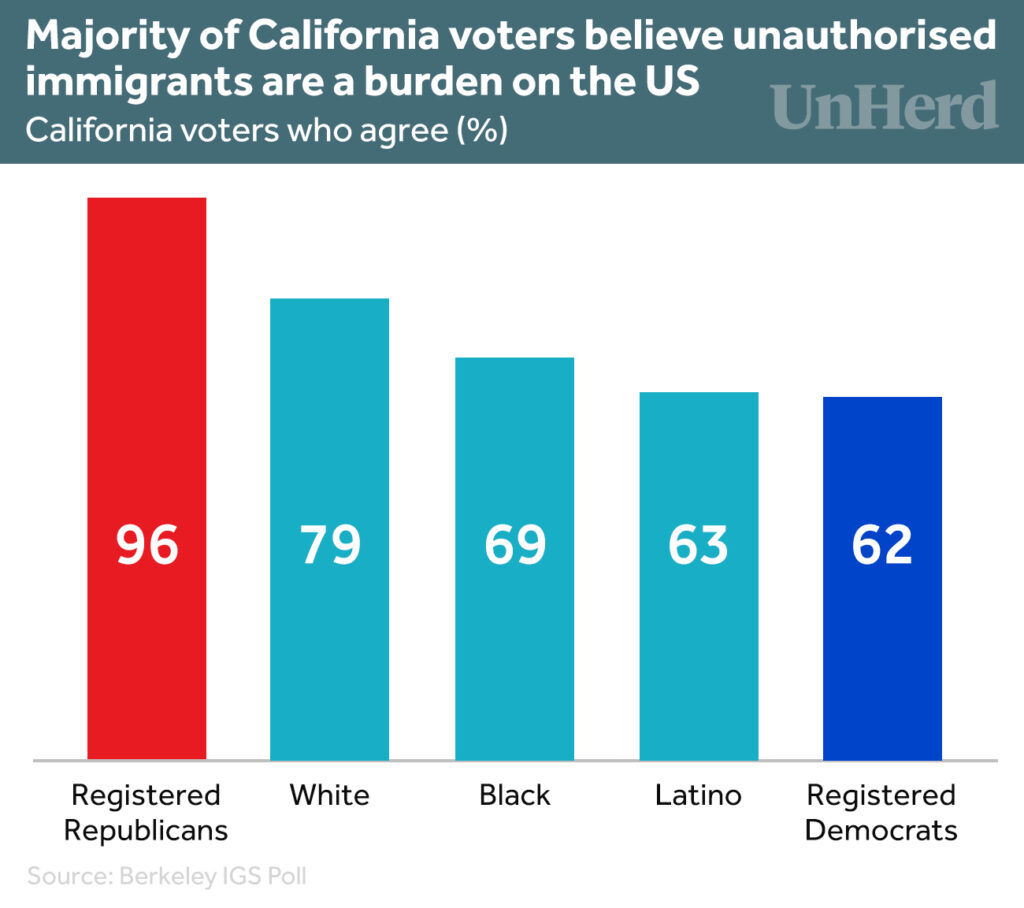 California voters, including Democrats and racial minorities, are increasingly sceptical of immigration, a poll from Berkeley IGS  found earlier this week.