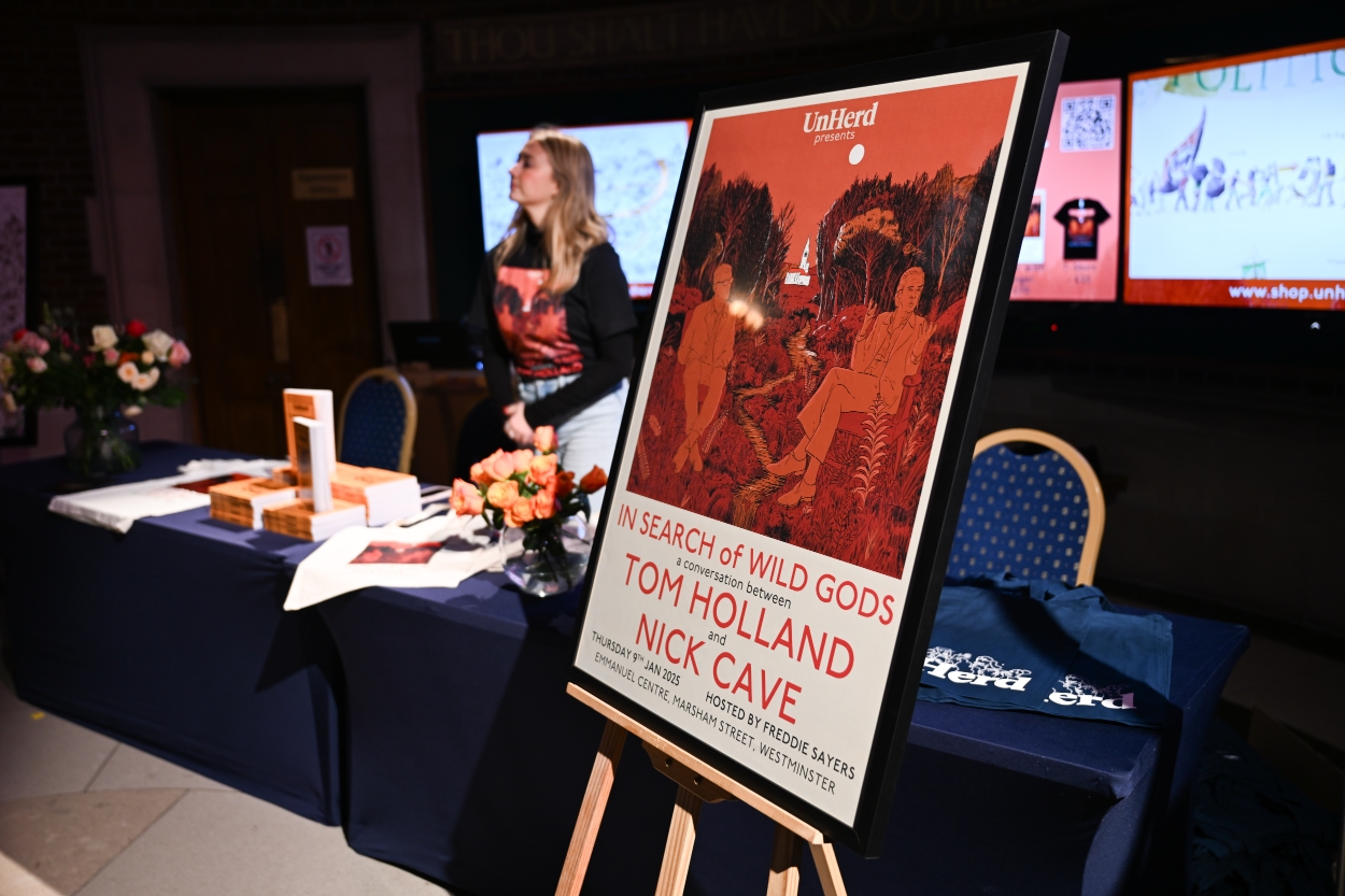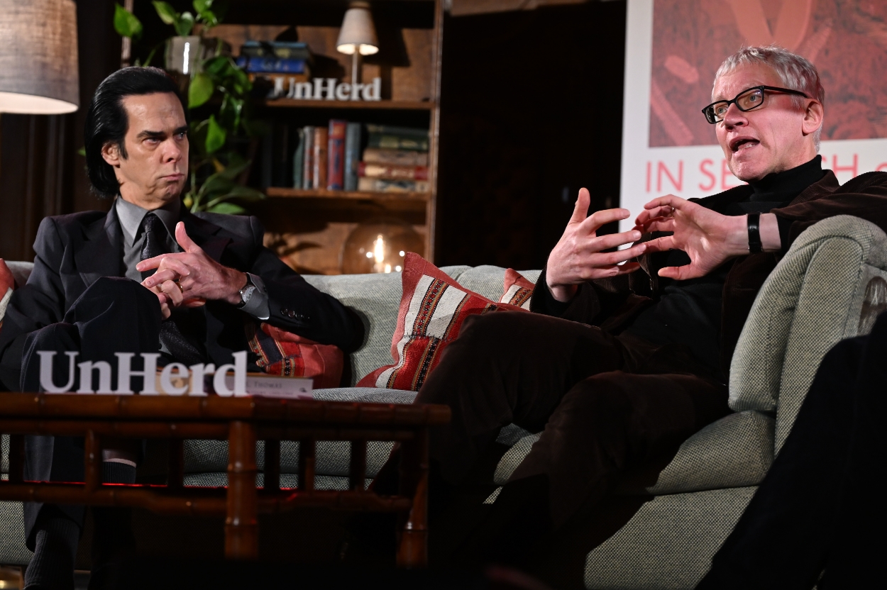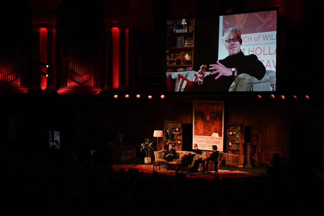 The first pictures are here from yesterday’s 800 ticket sell-out UnHerd event in London, In Search of Wild Gods, a conversation between Nick Cave and Tom Holland, hosted by UnHerd’s Freddie Sayers.