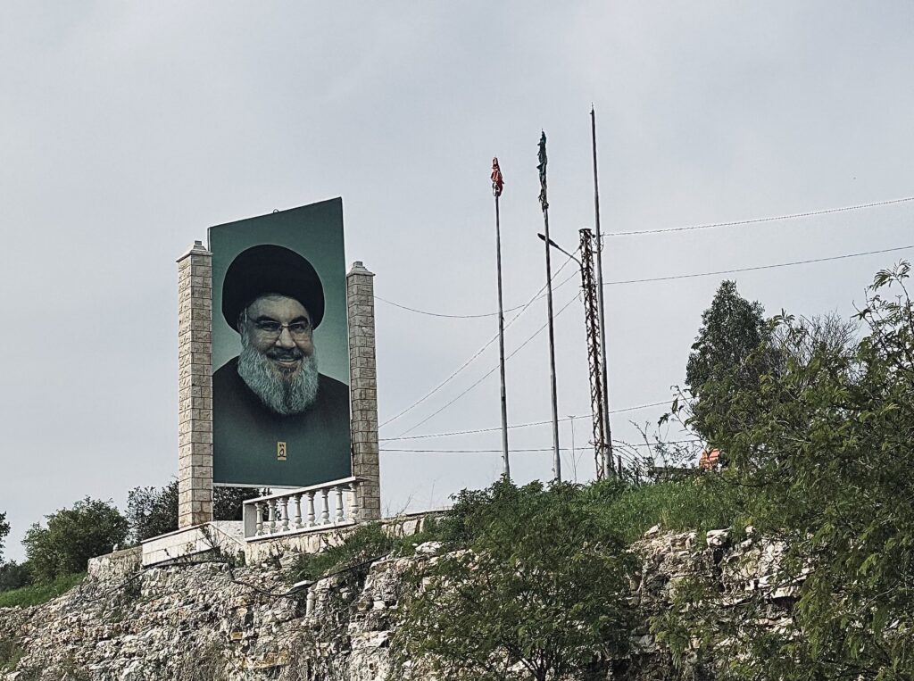 Another route to Lebanese eyes comes in the form of publicly displayed messaging. Billboards, posters, and flags are all commonplace throughout much of the country — often showcasing the group’s distinctive yellow flag with an assault rifle above the words “Party of Allah”.