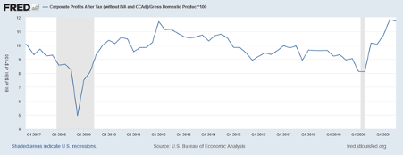 Some might counter this and say that lockdowns being lifted is good for the economy. This may be true, but it is unlikely to be good for corporate earnings. In fact, the lockdown has led to record corporate profits, as seen in the chart below. These profits have been driven by companies that have benefited from the lockdown.